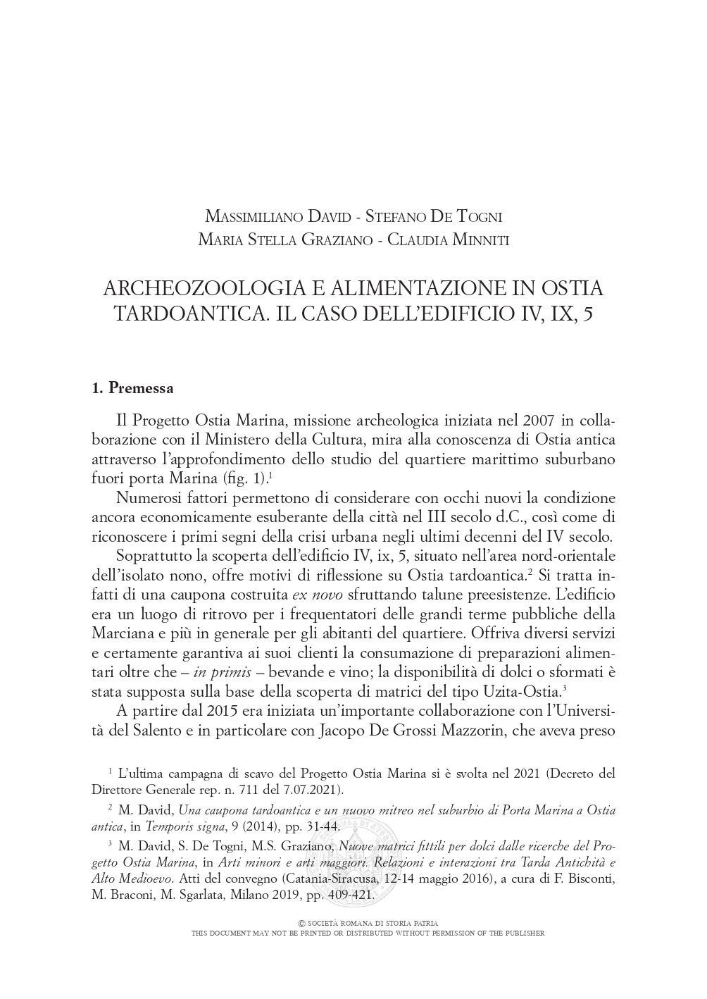 Archeozoologia e alimentazione in Ostia tardoantica. Il caso dell’edificio IV, IX, 5