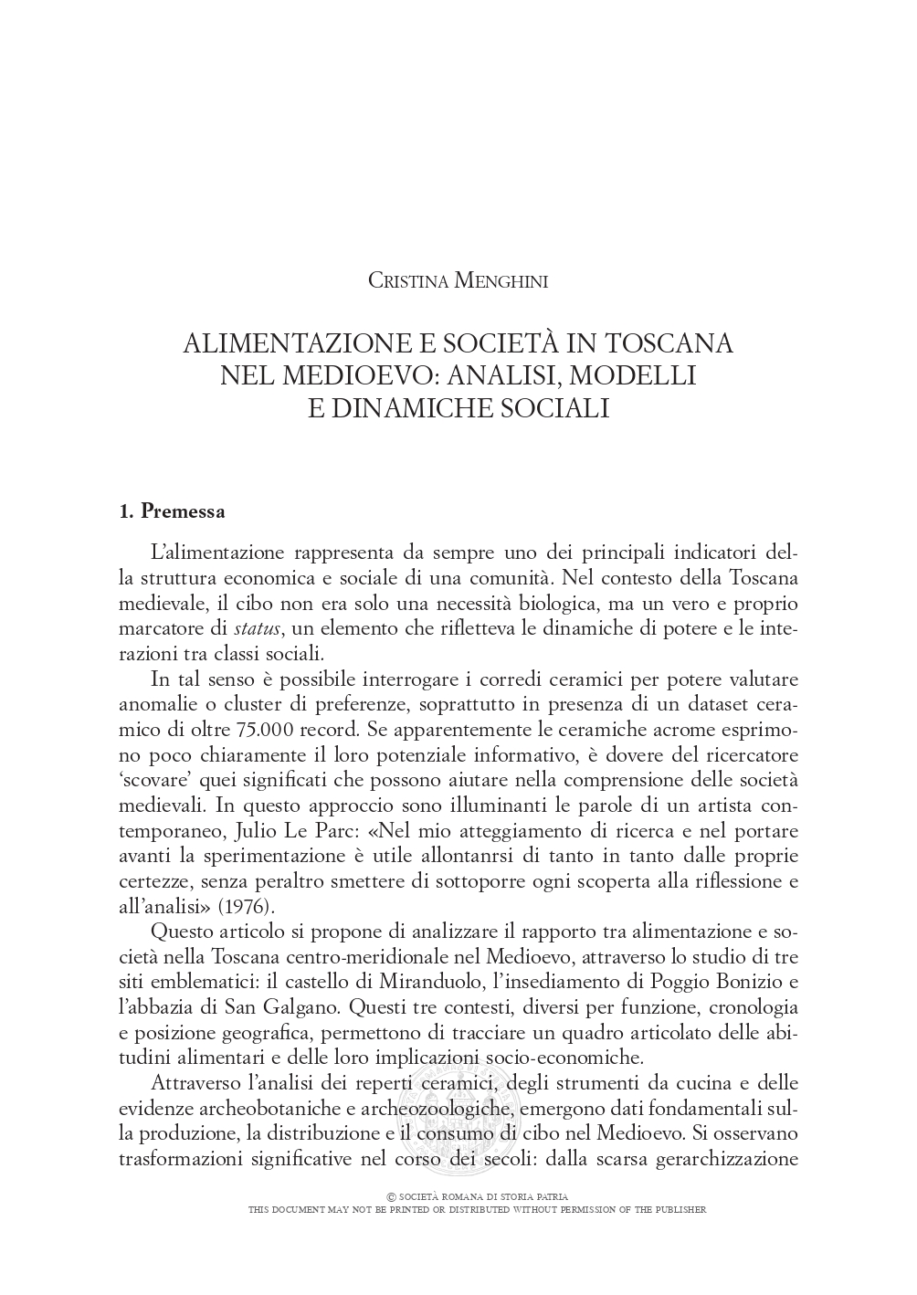 Con il termine alimentazione non si vuole intendere solo ciò che mangiamo, ma anche come lo conserviamo, lo cuciniamo e lo serviamo: la ceramica non è solo un orologio del tempo, ma una finestra sulle abitudini e sulle tecnologie delle società passate. Questo studio analizza l’importanza dei dataset ceramici nell’interpretazione dei processi storici, adottando un approccio “meta-cronico” che si basa simultaneamente su quantità e qualità. I dati numerici, tuttavia, devono essere sempre contestualizzati all’interno del quadro socio-economico, culturale, politico e territoriale di riferimento.